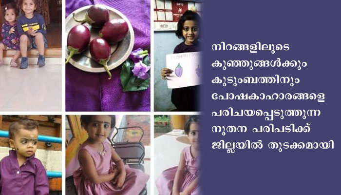 കാസര്ഗോഡ്: പോഷണ് അഭിയാന് പദ്ധതിയുടെ പോഷകാഹാര മാസാചരണത്തിന്റെ ഭാഗമായി നിറങ്ങളിലൂടെ കുഞ്ഞുങ്ങള്ക്കും കുടുംബത്തിനും പോഷകാഹാരങ്ങളെ പരിചയപ്പെടുത്തുന്ന നൂതന പരിപടിക്ക് ജില്ലയില് തുടക്കമായി. ജില്ലാ ഐ.സി.ഡി.എസ് പ്രോഗ്രാം ഓഫീസിന്റെ നേതൃത്വത്തിലാണ് വിവിധ അങ്കണവാടികളില് പരിപാടികള് നടന്നുവരുന്നത്. ആദ്യ ദിവസമായ ശനിയാഴ്ച (സെപ്റ്റംബര് 12) വയലറ്റ് നിറമാണ് നല്കിയത്. ജില്ലയിലെ മുഴുവന് അങ്കണവാടികളിലും വയലറ്റ് നിറത്തിലുള്ള പച്ചക്കറികളും പഴങ്ങളും പരിചയപ്പെടുത്തി. വയലറ്റ് നിറത്തിലുള്ള വസ്ത്രങ്ങള് അണിഞ്ഞ് കുഞ്ഞുങ്ങളും തിളങ്ങി.