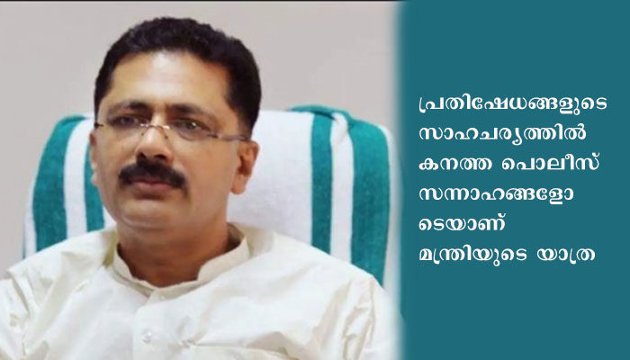 മലപ്പുറം: മന്ത്രി കെ.ടി. ജലീൽ മലപ്പുറത്തെ വീട്ടിൽ നിന്നും തിരുവനന്തപുരത്തേക്ക് തിരിച്ചു. മലപ്പുറം വളാഞ്ചേരിയിലെ വീടിനു മുന്നിൽ വച്ച് മന്ത്രിയെ ബി ജെ പി – യൂത്ത് കോൺഗ്രസ് പ്രവർത്തകർ കരിങ്കൊടി കാട്ടി. പ്രതിഷേധങ്ങളുടെ സാഹചര്യത്തിൽ കനത്ത പൊലീസ് സന്നാഹങ്ങളോടെയാണ് മന്ത്രിയുടെ യാത്ര. യാത്രയിലുടനീളം പ്രതിപക്ഷ സംഘടനകളുടെ പ്രതിഷേധമുണ്ടാകാം എന്ന കണക്കു കൂട്ടലിലാണ് പൊലീസ്.