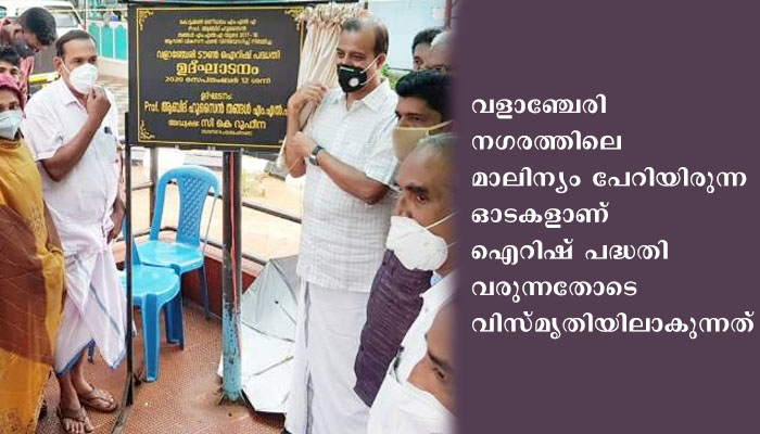 വളാഞ്ചേരി നഗരത്തിലെ മാലിന്യം പേറിയിരുന്ന ഓടകളാണ് ഐറിഷ് പദ്ധതി വരുന്നതോടെ വിസ്മൃതിയിലാകുന്നത്. കാല്നട യാത്രക്കാര്ക്കായി തിരക്കേറിയ പെരിന്തല്മണ്ണ-പട്ടാമ്പി റോഡിന് ഇരു വശങ്ങളിലുമായി ഇന്റര്ലോക്ക് ചെയ്ത നടപ്പാതകളും ഒരുക്കിയാണ് ഐറിഷ് മോഡല് നടപ്പാക്കിയത്. പ്രധാന ജംങ്ഷനില് നിന്ന് പെരിന്തല്മണ്ണ ഭാഗത്തേക്കുള്ള റോഡില് ഇരുവശങ്ങളിലുമായി 350 മീറ്ററും പട്ടാമ്പി റോഡില് 500 മീറ്ററുമാണ് ഐറിഷ് ഡ്രെയിനേജ് സംവിധാനം ഒരുക്കിയിട്ടുള്ളത്. ഇന്റര്ലോക്ക് ചെയ്ത നടപ്പാതയോടൊപ്പം വശങ്ങളിലൂടെ മഴവെള്ളം ഒഴുകിപ്പോകാനുള്ള സംവിധാനവുമാണ് ഐറിഷ് പദ്ധതിയുടെ ഭാഗമായി നിര്മിച്ചിട്ടുള്ളത്.