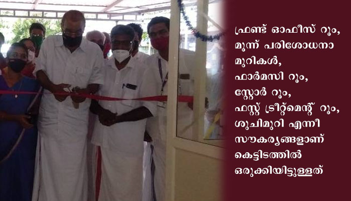 വിശാലമായ ഇരിപ്പിട സൗകര്യത്തോട് കൂടിയ ഫ്രണ്ട് ഓഫീസ് റൂം, മൂന്ന് പരിശോധനാ മുറികള്, ഫാര്മസി റൂം, സ്റ്റോര് റൂം, ഫസ്റ്റ് ട്രീറ്റ്മെന്റ് റൂം, ശുചിമുറി എന്നീ സൗകര്യങ്ങളാണ് കെട്ടിടത്തില് ഒരുക്കിയിട്ടുള്ളത്. കുടുംബാരോഗ്യ കേന്ദ്രത്തില് വച്ച് നടന്ന ഉദ്ഘാടന ചടങ്ങില് കാറളം ഗ്രാമ പഞ്ചായത്ത് പ്രസിഡന്റ് ഷീജ സന്തോഷ് അധ്യക്ഷത വഹിച്ചു. ജില്ലാ പഞ്ചായത്ത് വൈസ് പ്രസിഡന്റ് എന്. കെ. ഉദയപ്രകാശ്, ഇരിങ്ങാലക്കുട ബ്ലോക്ക് പഞ്ചായത്ത് പ്രസിഡന്റ് വി. എ. മനോജ്കുമാര് എന്നിവര് മുഖ്യാതിഥികളായി. കാത്തിരിപ്പ് കേന്ദ്രത്തിന്റെ സമര്പ്പണം കാറളം സര്വീസ് സഹകരണ ബാങ്ക് പ്രസിഡന്റ് കെ. എസ്. ബാബു നിര്വഹിച്ചു.