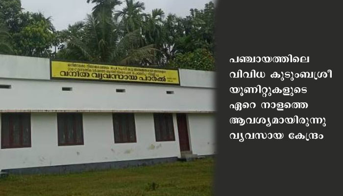 പഞ്ചായത്തിലെ വിവിധ കുടുംബശ്രീ യൂണിറ്റുകളുടെ ഏറെ നാളത്തെ ആവശ്യമായിരുന്നു വ്യവസായ കേന്ദ്രം. വനിതാ ഘടകപദ്ധതിയിലുള്‍പ്പെടുത്തി അഞ്ച് സെന്റ് സ്ഥലം വാങ്ങി. പിന്നീട് പ്രൊഫ. കെ.യു അരുണന്‍ എംഎല്‍എയുടെ ആസ്തിവികസന ഫണ്ടില്‍നിന്ന് 24 ലക്ഷം രൂപ കേന്ദ്രം നിര്‍മ്മിക്കാന്‍ അനുവദിച്ചു. 1200 ചതുരശ്ര അടിയില്‍ ഏഴ് മുറികളായാണ് നിര്‍മ്മാണം. 12 വര്‍ഷം മുന്‍പ് ഗ്രാമ, ബ്ലോക്ക് പഞ്ചായത്തുകളുടെ ഫണ്ടുകള്‍ ഉപയോഗിച്ച് നിര്‍മ്മിച്ച 600 ചതുരശ്ര അടിയിലുള്ള ഒരു കെട്ടിടം കൂടി ഈ കോമ്പൗണ്ടില്‍ നിലനില്‍ക്കുന്നുണ്ട്. ഇതുകൂടി വ്യവസായകേന്ദ്രത്തോട് കൂട്ടി ചേര്‍ക്കുവാനാണ് തീരുമാനം. 10 കുടുംബശ്രീകള്‍ ഇതിനകം അപേക്ഷ നല്‍കിയിട്ടുണ്ട്. അഞ്ചു കുടുംബശ്രീകളുടെ അപേക്ഷയില്‍ നടപടികളായി.