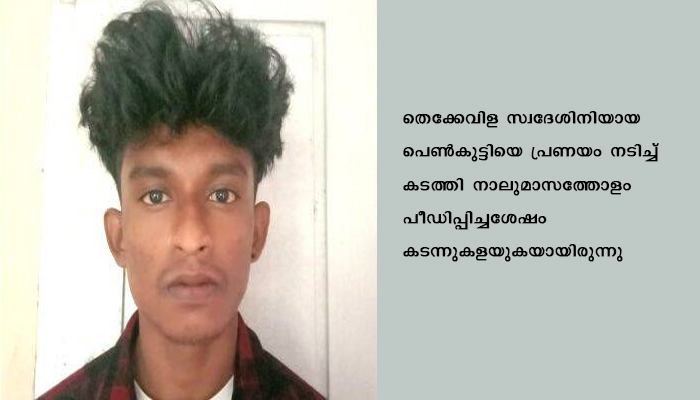 തെക്കേവിള സ്വദേശിനിയായ പെണ്‍കുട്ടിയെ പ്രണയം നടിച്ച്‌ കടത്തിക്കൊണ്ടുപോയി നാലുമാസത്തോളം പീഡിപ്പിച്ചശേഷം കടന്നുകളയുകയായിരുന്നു. പെണ്‍കുട്ടിയുടെ പരാതിയുടെ അടിസ്ഥാനത്തില്‍ ഇരവിപുരം പോലീസ്‌ നടത്തിയ അന്വേഷണത്തിനൊടുവിലാണ്‌ പ്രതി പിടിയിലായത്‌.
