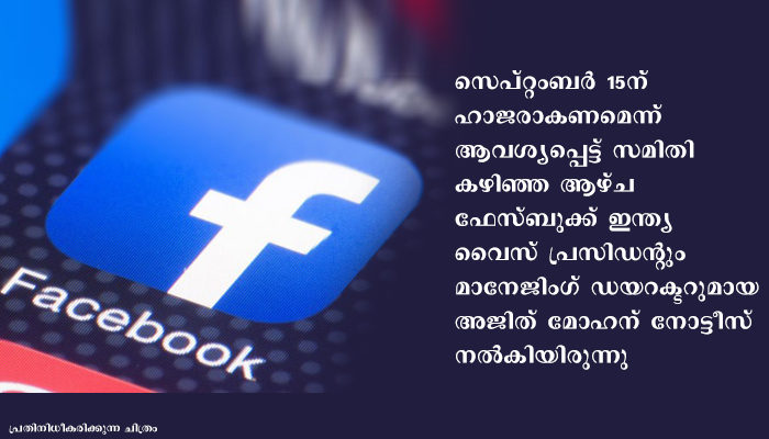 സെപ്റ്റംബര് 15ന് ഹാജരാകണമെന്ന് ആവശ്യപ്പെട്ട് സമിതി കഴിഞ്ഞ ആഴ്ച ഫേസ്ബുക്ക് ഇന്ത്യ വൈസ് പ്രസിഡന്റും മാനേജിംഗ് ഡയറക്ടറുമായ അജിത് മോഹന് നോട്ടീസ് നല്കിയിരുന്നു. വാള്സ്ട്രീറ്റ് ജേണലില് വന്ന ലേഖനത്തെ തുടര്ന്ന് സോഷ്യല് മീഡിയ പ്ലാറ്റഫോമിനെതിരെ നിരവധി ആരോപണങ്ങള് ഉയര്ന്നിരുന്നു. അതേസമയം, വിദ്വേഷ ഭാഷണവും അക്രമത്തെ പ്രേരിപ്പിക്കുന്ന ഉള്ളടക്കവും സോഷ്യല് മീഡിയ പ്ലാറ്റ്ഫോം വിലക്കുന്നുവെന്ന് കഴിഞ്ഞ മാസം ഫേസ്ബുക്ക് പറഞ്ഞിരുന്നു.