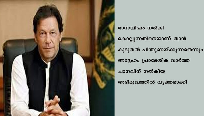 ബലാല്സംഗികളെ പരസ്യമായി വധിക്കുകയോ രാസവിഷം നല്കി കൊല്ലുകയോ ചെയ്യണമെന്ന് പാക് പ്രധാനമന്ത്രി ഇമ്രാന് ഖാന്