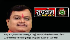 ന്യൂഡല്ഹി: മുസ്ലീങ്ങള് സര്ക്കാര് സര്വീസില് നുഴഞ്ഞുകയറുന്നുവെന്ന ആശയം വരുന്ന സുദര്ശന് ടിവിയിലെ ബിന്ദാസ് പോള് പരിപാടി നര്ത്തിവയ്ക്കാന് സുപ്രീം കോടതിയുടെ ഉത്തരവ്. ഈ പരിപാടിയലൂടെ മുസ്ലീം സമൂഹത്തെ അവഹേളിക്കാന് ശ്രമിക്കുന്നുവെന്ന് ചൂണ്ടിക്കാട്ടിയാണ് കോടതിയുടെ നടപടി. ഒരു സമൂദായത്തെ ലക്ഷ്യം വച്ച് അപകീര്ത്തികരമായ വിധം പ്രവര്ത്തിക്കാനാവില്ലെന്നും സുപ്രീം കോടതി പറഞ്ഞു.