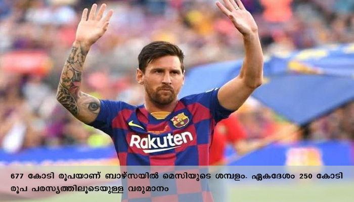 677 കോടി രൂപയാണ് ബാഴ്സയില് മെസിയുടെ ശമ്പളം. ഏകദേശം 250 കോടി രൂപ പരസ്യത്തിലൂടെയുള്ള വരുമാനം. ഈ സീസണില് ബാഴ്സ വിടാനുള്ള ഒരുക്കത്തിലായിരുന്നു മെസി. എന്നാല്, ഭീമമായ വിടുതല് തുക തടസ്സമായി. ഒടുവില് ഈ സീസണ്കൂടി തുടരാന് ഈ അര്ജന്റീനക്കാരന് തീരുമാനിക്കുകയായിരുന്നു.യുവന്റസില് റൊണാള്ഡോയുടെ ശമ്പളം 665 കോടി രൂപയാണ്. ബാക്കി പരസ്യം. പിഎസ്ജിയില് നെയ്മര്ക്ക് 545 കോടി രൂപയും. പിഎസ്ജിയുടെ ഇരുപത്തൊന്നുകാരന് കിലിയന് എംബാപ്പെയാണ് സമ്ബന്നരുടെ പട്ടികയില് നാലാമത്–-309 കോടി രൂപ. മുഹമ്മദ് സലാ (ലിവര്പൂള്–-272 കോടി), പോള് പോഗ്ബ (മാഞ്ചസ്റ്റര് യുണൈറ്റഡ്–-250 കോടി), ഒണ്ടോയ്ന് ഗ്രീസ്മാന് (ബാഴ്സലോണ–-242 കോടി), ഗാരെത് ബെയ്ല് (റയല് മാഡ്രിഡ്–-213 കോടി), റോബര്ട്ട് ലെവന്ഡോവ്സ്കി (ബയേണ് മ്യൂണിക് –-206 കോടി), ഡേവിഡ് ഡെഗെയ (198 കോടി).