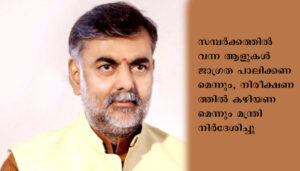 സമ്പര്ക്കത്തില് വന്ന ആളുകള് ജാഗ്രത പാലിക്കണമെന്നും, നിരീക്ഷണത്തില് കഴിയണമെന്നും മന്ത്രി നിര്ദേശിച്ചു. കേന്ദ്ര ഉപരിതല ഗതാഗതമന്ത്രി നിതിന് ഗഡ്കരിക്ക് ഇന്നലെ കോവിഡ് സ്ഥിരീകരിച്ചിരുന്നു.