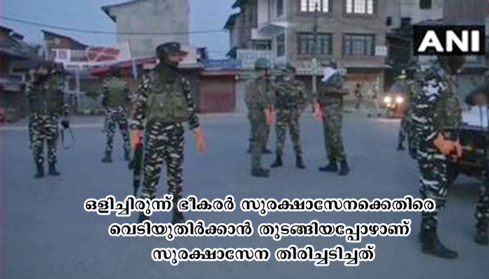 ശ്രീനഗർ: സുരക്ഷാസേനയും ഭീകരരും തമ്മിലുള്ള ഏറ്റുമുട്ടലിൽ മൂന്ന് ഭീകരർ കൊല്ലപ്പെട്ടു. ശ്രീനഗറിലെ ബട്ട്മാലു മേഖലയിൽ 17-09-2020, വ്യാഴാഴ്ച പുലർച്ചെ രണ്ടര മണിയോടെ ആരംഭിച്ച ഏറ്റുമുട്ടൽ മണിക്കൂറോളം നീണ്ടു. സിആർപിഎഫ് ഡെപ്യൂട്ടി കമാൻഡർ അടക്കം മൂന്ന് പേർക്ക് പരിക്കേറ്റു. പ്രദേശവാസിയായ ഒരു സ്ത്രീയും മരണമടഞ്ഞു.