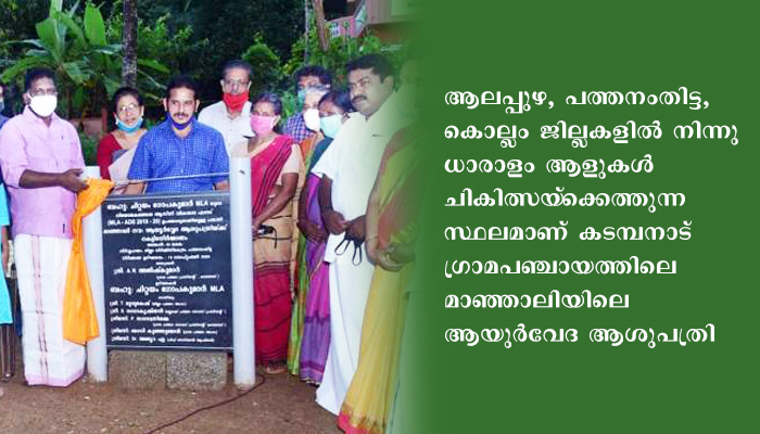 ആലപ്പുഴ, പത്തനംതിട്ട, കൊല്ലം ജില്ലകളില്‍ നിന്നു ധാരാളം ആളുകള്‍ ചികിത്സയ്‌ക്കെത്തുന്ന സ്ഥലമാണ് കടമ്പനാട് ഗ്രാമപഞ്ചായത്തിലെ മാഞ്ഞാലിയിലെ ആയുര്‍വേദ ആശുപത്രി. ഈ പശ്ചാത്തലത്തില്‍ കൂടുതല്‍ അടിസ്ഥാനസൗകര്യങ്ങള്‍ വേണം എന്നതു കണക്കിലെടുത്താണ് കെട്ടിടം നിര്‍മിക്കുന്നതിന് ആസ്തി വികസന ഫണ്ട് എംഎല്‍എ അനുവദിച്ചത്.   ചടങ്ങില്‍ കടമ്പനാട് ഗ്രാമപഞ്ചായത്ത് പ്രസിഡന്റ് എ.ആര്‍ അജീഷ് കുമാര്‍ അധ്യക്ഷത വഹിച്ചു. ബ്ലോക്ക് പഞ്ചായത്ത് വൈസ് പ്രസിഡന്റ് എസ്.രാധാകൃഷ്ണന്‍, ഗ്രാമപഞ്ചായത്ത് സ്റ്റാന്‍ഡിംഗ് കമ്മിറ്റി ചെയര്‍മാന്മാരായ മോനി കുഞ്ഞുമോന്‍, ലീന, ഗ്രാമപഞ്ചായത്ത് അംഗങ്ങളായ കെ.ജി ശിവദാസന്‍, കെ.രാജമ്മ, വിവിധ രാഷ്ട്രീയകക്ഷി നേതാക്കളായ സി.മോഹനന്‍നായര്‍, രാജേന്ദ്രന്‍ പിള്ള, പൊടിമോന്‍ കെ മാത്യു, വൈ.രാജന്‍, തങ്കമണി ടീച്ചര്‍, ത്രിവിക്രമന്‍ പിള്ള, മെഡിക്കല്‍ ഓഫീസര്‍ ഡോ.അജൂറ തുടങ്ങിയവര്‍ പ്രസംഗിച്ചു.  ആറുമാസത്തിനുള്ളില്‍ പണി പൂര്‍ത്തിയാകുമെന്ന് ചിറ്റയം ഗോപകുമാര്‍ എംഎല്‍എ അറിയിച്ചു. ജില്ലാ നിര്‍മിതികേന്ദ്രമാണ് നിര്‍വഹണ ഏജന്‍സി.