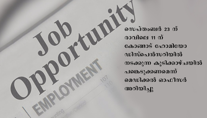 പാലക്കാട് കോങ്ങാട് സര്ക്കാര് ഹോമിയോ ഡിസ്പെന്സറിയില് ലാബ് ടെക്നീഷ്യന് ഒഴിവ്