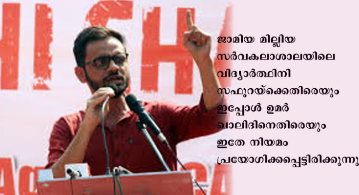 ന്യൂഡൽഹി: ഡൽഹി കലാപവുമായി ബന്ധപ്പെട്ട് ജെ എൻ യു വിലെ മുൻ വിദ്യാർത്ഥി നേതാവായ ഉമർ ഖാലിദ് അറസ്റ്റ് ചെയ്യപ്പെടുകയും പൊലീസ് കസ്റ്റഡിയിലേക്ക് മാറ്റപ്പെടുകയും ചെയ്തതിൽ വലിയ ജനാധിപത്യ വിരുദ്ധതയുണ്ടെന്ന് വിമർശകർ.