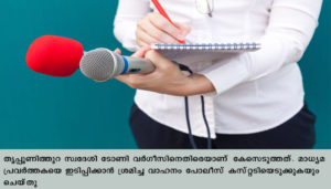 കൊച്ചി: മാദ്ധ്യമ പ്രവര്ത്തകയെ പൊതുവഴിയില് വച്ച് അപമാനിക്കാന് ശ്രമിച്ച സംഭവത്തില് യുവാവിനെതിരെ പോലീസ് കേസെടുത്തു. തൃപ്പൂണിത്തുറ സ്വദേശി ടോണി വര്ഗീസിനെതിരെയാണ് കേസെടുത്തത്. മാധ്യമ പ്രവര്ത്തകയെ ഇടിപ്പിക്കാന് ശ്രമിച്ച വാഹനം പോലീസ് കസ്റ്റടിയെടുക്കുകയും ചെയ്തു.