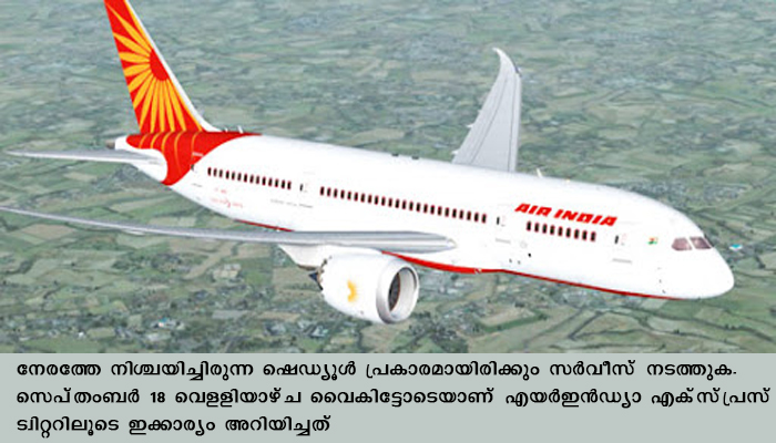 ന്യൂഡല്ഹി: ദുബായിലേക്കും തിരിച്ചുമുളള എയര് ഇന്ത്യാ എക്സ് പ്രസ് വിമാനങ്ങള് സെപ്തംബര് 19 മുതല് സര്വീസ് പുനരാരംഭിക്കുമെന്ന് അധികൃതര് അറിയിച്ചു. നേരത്തേ നിശ്ചയിച്ചിരുന്ന ഷെഡ്യൂള് പ്രകാരമായിരിക്കും സര്വീസ് നടത്തുക. സെപ്തംബര് 18 വെളളിയാഴ്ച വൈകിട്ടോടെയാണ് എയര്ഇന്ഡ്യാ എക്സ്പ്രസ് ട്വിറ്ററിലൂടെ ഇക്കാര്യം അറിയിച്ചത്.