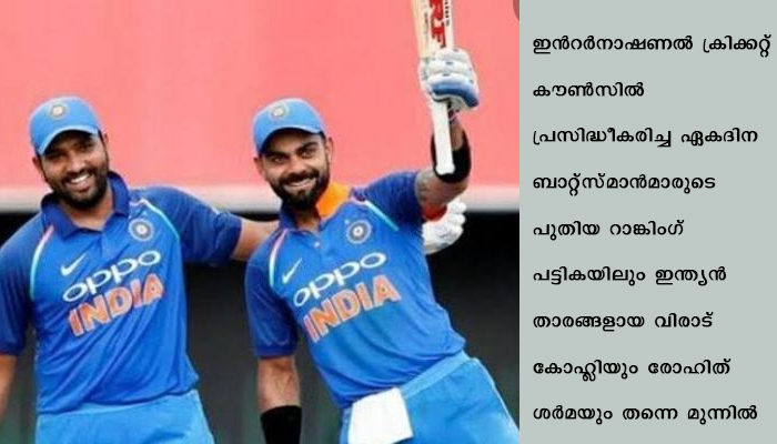 ഇൻറർനാഷണൽ ക്രിക്കറ്റ് കൗൺസിലിൻ്റെ പുതിയ റാങ്കിംഗ് പട്ടികയിലും കോഹ്ലിയും രോഹിതും തന്നെ മുന്നിൽ