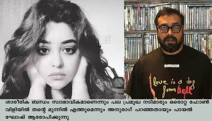 അനുരാഗ് കശ്യപ് ലൈംഗിക ബന്ധത്തിന് ശ്രമിച്ചുവെന്ന് നടി പായൽ ഘോഷ്