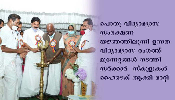 എല്ലാ സര്ക്കാര് സ്കൂളിനും സൗകര്യം ഉയര്ത്തുകയെന്ന കാഴ്ചപ്പാടാണ് ഈ സര്ക്കാരിനുള്ളത്. പൊതു വിദ്യാഭ്യാസ സംരക്ഷണ യജ്ഞത്തിലൂന്നി ഉന്നത വിദ്യാഭ്യാസ രംഗത്ത് മുന്നേറ്റങ്ങള് നടത്തി സര്ക്കാര് സ്കൂളുകള് ഹൈടെക് ആക്കി മാറ്റി.