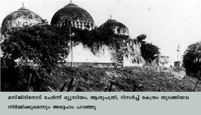 അയോദ്ധ്യ: ബാബരി മസ്ജിദിന് പകരം അയോധ്യയില് നിര്മ്മിക്കുന്ന പള്ളി മക്കയിലെ കഅ്ബ ശരീഫിന്റെ മാതൃകയിലാവുമെന്ന് ഇസ്ലാമിക് കള്ച്ചറല് ഫൗണ്ടേഷന് സെക്രട്ടറി അതര് ഹുസൈന്. പരാമ്പരാഗത ആകൃതിയ്ക്ക് പകരം ചതുരാകൃതിയായിരിക്കും ഈ പള്ളിയ്ക്കുണ്ടാവുക. പള്ളിക്ക് ബാബരി മസ്ജിദ് എന്ന പേര് നല്കില്ല. ഒരു രാജാവിന്റെയോ ചക്രവര്ത്തിയുടെയോ പേരും നല്കില്ല. അയോധ്യയിലെ ധനിപൂര് ഗ്രാമത്തില് 15,000 സ്വകയര് ഫീറ്റിലാണ് പള്ളി നിര്മ്മിക്കുന്നത്. അതിനാല് ഈ പള്ളിയെ ധന്നിപൂര് മസ്ജിദ് എന്ന് വിളിക്കാനാണ് എനിക്ക് ഇഷ്ടമെന്നും അതര് ഹുസൈന് പറഞ്ഞു.മസ്ജിദിനോട് ചേര്ന്ന് മ്യൂസിയം, ആശുപത്രി, റിസര്ച്ച് കേന്ദ്രം തുടങ്ങിയവ നിര്മ്മിക്കുമെന്നും അദ്ദേഹം പറഞ്ഞു.
