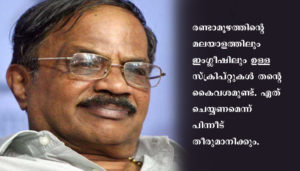 രണ്ടാമൂഴത്തിൻ്റെ മലയാളത്തിലും ഇംഗ്ലീഷിലും ഉള്ള സ്ക്രിപ്റ്റുകൾ തൻ്റെ കൈവശമുണ്ട്. ഏത് ചെയ്യണമെന്ന് പിന്നീട് തീരുമാനിക്കും.