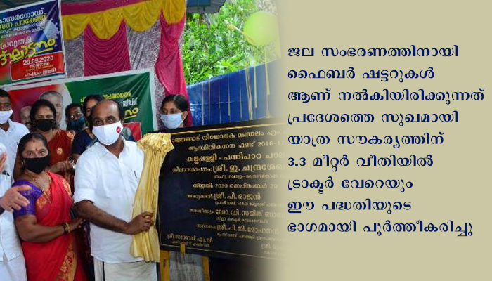 ചെറുകിട ജലസേചനവകുപ്പ് നിര്മ്മാണം പൂര്ത്തീകരിച്ച പന്നിപ്പാറ വി സി ബി കം ട്രാക്ടര് വേയുടെ ഉദ്ഘാടനവും മന്ത്രി നിര്വഹിച്ചു. പനത്തടി പഞ്ചായത്തിന്റെ നിര്ദ്ദേശമനുസരിച്ച്നബാര്ഡ് എ ആര് ഐ ഡി എഫ് ഐ ഫണ്ടില് 68 ലക്ഷം രൂപ വകയിരുത്തി ആണ് പന്നിപ്പാറ വി സി ബി കോം ട്രാക്ടര് വേ നിര്മ്മാണം പൂര്ത്തിയാക്കിയത്. 42 ഹെക്ടര് സ്ഥലത്ത് ജലസംഭരണം ഭൂഗര്ഭജലവിതാനം ഉയര്ത്തുക എന്നിവ സാധ്യമാകുന്ന രീതിയിലാണ് റോഡിനു കുറുകെ വി സി ബി നിര്മ്മിച്ചിരിക്കുന്നത്. ജല സംഭരണത്തിനായി ഫൈബര് ഷട്ടറുകള് ആണ് നല്കിയിരിക്കുന്നത് പ്രദേശത്തെ സുഖമായി യാത്ര സൗകര്യത്തിന് 3.3 മീറ്റര് വീതിയില് ട്രാക്ടര് വേറെയും ഈ പദ്ധതിയുടെ ഭാഗമായി പൂര്ത്തീകരിച്ചിട്ടുണ്ട്.