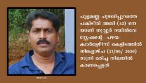 വണ്ടൂര്: മലപ്പുറം ജില്ലയിലെ തുവ്വൂരില് യുവാവിനെ ദുരൂഹ സാഹചര്യത്തില് മരിച്ച നിലയില് കണ്ടെത്തി. പൂളമണ്ണ ചുഴലിപ്പുറത്തെ പകിടീരി അലി (42) നെ യാണ് തുവ്വൂര് റയില്വേ സ്റ്റേഷൻ്റെ പഴയ ക്വാര്ട്ടേഴ്സ് കെട്ടിടത്തിൽ തിങ്കളാഴ്ച (21/09/ 2020) രാത്രി മരിച്ച നിലയില് കണ്ടെത്തിയത്.