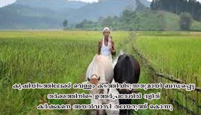 ലക്നൗ: കൃഷിയിടത്തിലേക്ക് വെള്ളം കടത്തിവിടുന്നതുമായി ബന്ധപ്പെട്ട തർക്കത്തിനിടെ ഉത്തർപ്രദേശിൽ ദളിത് കർഷകനെ അയൽവാസി തലയറുത്ത് കൊന്നു.