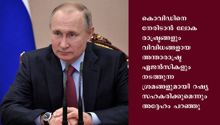 തങ്ങൾ വികസിപ്പിച്ച ‘സ്പുട്നിക് വി’ വാക്സിൻ സുരക്ഷിതവും ഫലപ്രദവുമാണ്. കൊറോണ വൈറസിനെ കണ്ടെത്തുന്നതിനും പ്രതിരോധിക്കുന്നതിനുമായി വളരെ മികച്ച സംവിധാനങ്ങൾ തന്നെ റഷ്യ വികസിപ്പിച്ചിട്ടുണ്ട്. കൊവിഡിനെ നേരിടാൻ ലോക രാഷ്ട്രങ്ങളും വിവിധങ്ങളായ അന്താരാഷ്ട്ര ഏജൻസികളും നടത്തുന്ന ശ്രമങ്ങളുമായി റഷ്യ സഹകരിക്കുമെന്നും അദ്ദേഹം പറഞ്ഞു. മഹാമാരിയുടെ പ്രതിരോധ പ്രവർത്തനങ്ങൾക്ക് ലോകാരോഗ്യ സംഘടന തന്നെയാണ് മുൻകൈ എടുക്കേണ്ടത്. ലോകാരോഗ്യ സംഘടനയെ ശക്തിപ്പെടുത്താൻ റഷ്യ പ്രതിജ്ഞാബദ്ധമാണെന്നും പുടിൻ വിശദീകരിച്ചു.