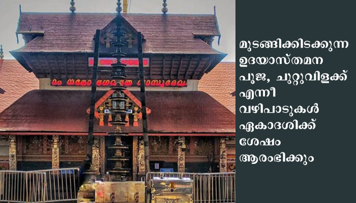 ഈ വര്‍ഷത്തെ ചെമ്പൈ സംഗീതോല്‍സവം ചടങ്ങ് മാത്രമാക്കി നടത്താനും ചെമ്പൈ പുരസ്‍കാര ജേതാവിന്‍റെ സംഗീത കച്ചേരി ഏകാദശി നാളില്‍ നടത്തുന്നതിനും തീരുമാനമായി. മുടങ്ങിക്കിടക്കുന്ന ഉദയാസ്‍തമന പൂജ, ചുറ്റുവിളക്ക് എന്നീ വഴിപാടുകള്‍ ഏകാദശിക്ക് ശേഷം ആരംഭിക്കും. ദേവസ്വം മീറ്റിങ് ഹാളുകളുടെയും മേല്‍പ്പത്തൂര്‍ ഓഡിറ്റോറിയത്തിന്‍ ബുക്കിങ് ഉടന്‍ പ്രാബല്യത്തില്‍ വരും