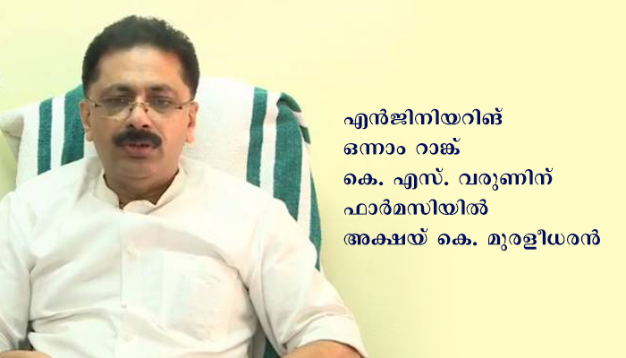 എന്ജിനിയറിങ് ഒന്നാം റാങ്ക് കെ. എസ്. വരുണിന്; ഫാര്മസിയില് അക്ഷയ് കെ. മുരളീധരന്