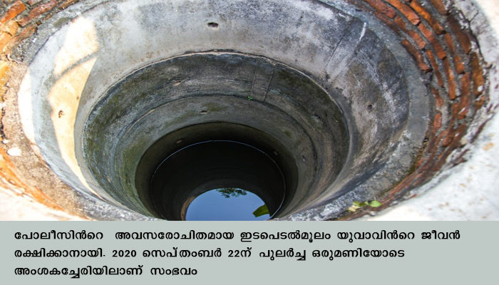 എടപ്പാള്: പോലീസിനെ കണ്ട് ഭയന്നോടിയ യുവാവ് ഓട്ടത്തിനിടയില് കിണറ്റില്വീണ്. പോലീസിന്റെ അവസരോചിതമായ ഇടപെടല്മൂലം യുവാവിന്റെ ജീവന് രക്ഷിക്കാനായി. 2020 സെപ്തംബര് 22ന് പുലര്ച്ച ഒരുമണിയോടെ അംശകച്ചേരിയിലാണ് സംഭവം. പട്രോളിംഗിനിടയില് ചങ്ങരംകുളം സ്റ്റേഷനിലെ എഎസ്ഐ ശിവന്, സിപിഒമധു എന്നിവര് വഴിയരുകില് നില്ക്കുന്ന രണ്ട് യുവാക്കളെ ശ്രദ്ധയില് പെട്ടു. പോലീസ് വാഹനം കണ്ട് ഇരുവരും സമീപത്തെ കെട്ടിടത്തിന് അടുത്തേക്ക് നീങ്ങിയതോടെ വാഹനം നിര്ത്തി പോലീസ് ചോദ്യം ചെയ്തു.