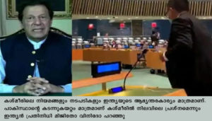 ന്യൂയോർക്ക്: പാക് പ്രധാനമന്ത്രിയുടെ പ്രസംഗത്തിനിടെ യു.എന്‍ പൊതുസഭയില്‍നിന്ന് ഇന്ത്യ ഇറങ്ങിപ്പോയി, കശ്മീര്‍ വിഷയത്തിലെ വിവാദ പരാമര്‍ശത്തില്‍ പ്രതിഷേധിച്ചാണ് ഇന്ത്യൻ പ്രതിനിധി ഇറങ്ങിപ്പോയത്. ചര്‍ച്ചയ്ക്ക് പ്രധാനമന്ത്രി നരേന്ദ്രമോദി ഇന്ന് മറുപടി പറയും. യു.എന്നിന്‍റെ 75ാം ജനറല്‍ അസംബ്ലിയില്‍ പാകിസ്താന്‍ പ്രധാനമന്ത്രി ഇമ്രാന്‍ഖാന്‍ പ്രസംഗിക്കവെയാണ് യുഎന്നിലെ ഇന്ത്യന്‍ പ്രതിനിധി മിജിദോ വിനിദോ ഇറങ്ങിപ്പോയത്.