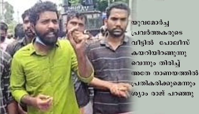 തുടർന്ന് പ്രവർത്തകരുടെ വീടുകളില് പോലീസ് റെയ്ഡ് നടത്തിയിരുന്നു. റെയ്ഡ് നടത്തുന്നതിൽ പ്രതിഷേധിച്ചാണ് ശ്യാം രാജിൻ്റെ പരസ്യമായ ഭീഷണി ഉണ്ടായത്.