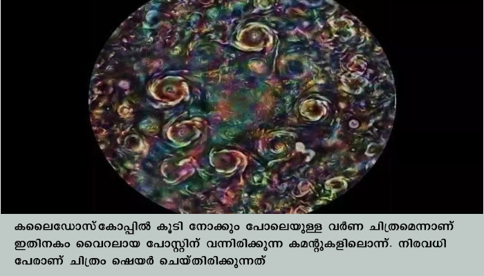 കലൈഡോസ്കോപ്പില് കൂടി നോക്കും പോലെയുള്ള വര്ണ ചിത്രമെന്നാണ് ഇതിനകം വൈറലായ പോസ്റ്റിന് വന്നിരിക്കുന്ന കമന്റുകളിലൊന്ന്. നിരവധി പേരാണ് ചിത്രം ഷെയര് ചെയ്തിരിക്കുന്നത്.