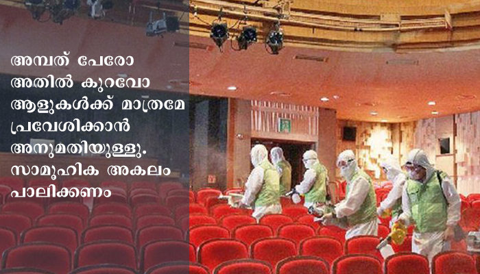 അമ്പത് പേരോ അതില് കുറവോ ആളുകള്ക്ക് മാത്രമേ പ്രവേശിക്കാൻ അനുമതിയുള്ളു. സാമൂഹിക അകലം പാലിക്കണം. കോവിഡ് മാനദണ്ഡമനുസരിച്ച നിയന്ത്രണങ്ങൾ പാലിച്ചായിരിക്കും പ്രവേശനം