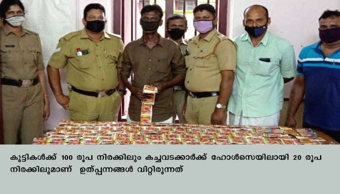 കുട്ടികള്ക്ക് 100 രൂപ നിരക്കിലും കച്ചവടക്കാര്ക്ക് ഹോള്സെയിലായി 20 രൂപ നിരക്കിലുമാണ് ഉത്പ്പന്നങ്ങള് വിറ്റിരുന്നത്. പ്രതിയില് നിന്നും കോട്പ നിയമ പ്രകാരം പിഴയീടാക്കി. പ്രിവന്റീവ് ഓഫീസര് പി.ശ്രീകാന്തിന്റെ നേതൃത്വത്തില് പ്രിവന്റീവ് ഓഫീസര്മാരായ എം നൗഷാദ്, ആന്റണി മാത്യു, സി ഇ ഓ മാരായ അരുണ്.പി നായര്, ഡി.സുമേഷ്, ഡബ്ല്യു.സി.ഇ.ഒ അമ്പിളി കെജി.എന്നിവര് റെയ്ഡില് പങ്കെടുത്തു.