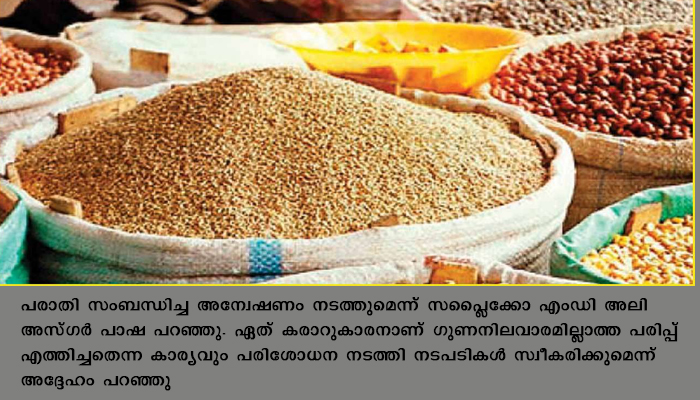 പെരുമ്പാവൂര്: കുന്നത്തുനാട് സപ്ലൈ ഓഫീസിന് കീഴിലുളള റേഷന്കടയില് നിന്ന് ലഭിച്ച കിറ്റിലെ പരിപ്പ് പഴക്കം ചെന്ന് ചീത്തയായാതാണെന്ന് പരാതി. അശമന്നൂര് സ്വദേശി ജയേഷിനാണ് ഉപയോഗ യോഗ്യമല്ലാത്ത കിറ്റ് ലഭിച്ചത്. കാലപ്പഴക്കം മൂലം നിറംമാറി പുഴുവും വണ്ടും അരിച്ച് ദ്വാരം വീണ നിലയിലായിരുന്നു പരിപ്പ്.