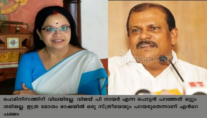 ഇതുകണ്ടപ്പോള് ഒരുപാട് വിഷമം തോന്നി. ഫെമിനിസത്തിന് വിലയില്ലേ. വിജയ് പി നായര് എന്ന പൊട്ടന് പറഞ്ഞത് ഒട്ടും ശരിയല്ല. ഇത്ര മോശം ഭാഷയില് ഒരു സ്ത്രീയേയും പറയരുതെന്നാണ് എന്റെ പക്ഷം. ഇവര് പോയി അവന് രണ്ടടി കൊടുത്തിട്ട് ഇറങ്ങി വന്നിരുന്നെങ്കിലും ഇത്ര പ്രശ്നമില്ലായിരുന്നു. ഇത് അതാണോ ചെയ്തത്. ചൊറിയണം കൊണ്ട് മുണ്ടിനടിയില് ഇടുക, മഷിയൊഴിക്കുക, കേട്ടാലറയ്ക്കുന്ന തെറി വിളിക്കുക. അതില് ആതെറി വിളിക്കുന്ന പെണ്കുട്ടി ഒരു സ്ത്രീ ആണോ എന്നുപോലും തോന്നിപ്പോയി. അത്രമാത്രം കേട്ടാലറയ്ക്കുന്ന തെറി വിളി. ഇതാണോ ഫെമിനിസം. ഇങ്ങനെയാണോ സ്ത്രീത്വം. ഈ പറയുന്നവര് ആംബുലന്സില് പെണ്കുട്ടിയെ പീഡിപ്പിച്ചപ്പോള് എവിടെയായിരുന്നു. അപ്പോള് ഇതെല്ലാം പേരുണ്ടാക്കനുളള വേലയാണ്. പിസി ജോര്ജ് പറഞ്ഞു.