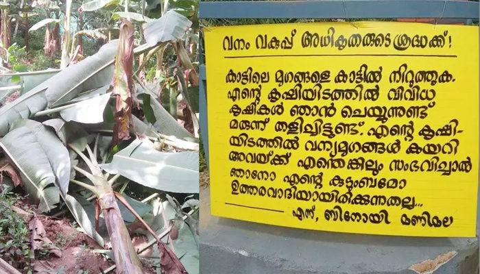 സുല്ത്താന് ബത്തേരി: വനം വകുപ്പിന് മുന്നറിയിപ്പുമായി കര്ഷകന്. കാട്ടിലെ മൃഗങ്ങളെ കാട്ടില് നിറുത്തുക. എന്റെ കൃഷിയിടത്തില് വിവിധ കൃഷികള് ഞാന് ചെയ്തിട്ടുണ്ട്. മരുന്നുതളിച്ചിട്ടുണ്ട്. എന്റെ കൃഷിയിടത്തില് വന്യ മൃഗങ്ങള് കയറി അവയ്ക്ക എന്തെങ്കിലും സംഭവിച്ചാല് ഞാനോ എന്റെ കുടുംബമോ ഉത്തരവാദികളായിരിക്കുന്നതല്ല എന്ന ബോര്ഡാണ് കൃഷിയിടത്തില് പ്രത്യക്ഷപ്പെട്ടത്.