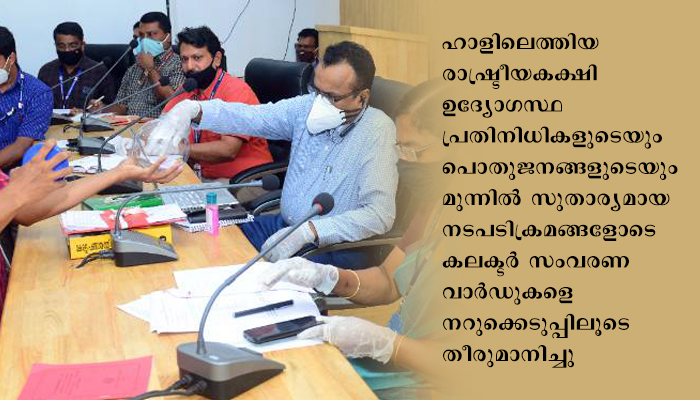 ജില്ലാ കലക്ടര് ബി അബ്ദുല് നാസറിന്റെ അധ്യക്ഷതയില് കോവിഡ് മാനദണ്ഡങ്ങള് പാലിച്ച് തിരഞ്ഞെടുപ്പ് കമ്മീഷന്റെ നിര്ദേശങ്ങളും പഞ്ചായത്ത് രാജ് ആക്ടും അനുസരിച്ചുള്ള നടപടിക്രമങ്ങളിലൂടെയാണ് നറുക്കെടുപ്പ് നടന്നത്. മുന്കൂട്ടി നല്കിയ സമയക്രമമനുസരിച്ച് ഹാളിലെത്തിയ രാഷ്ട്രീയകക്ഷി ഉദ്യോഗസ്ഥ പ്രതിനിധികളുടെയും പൊതുജനങ്ങളുടെയും മുന്നില് സുതാര്യമായ നടപടിക്രമങ്ങളോടെ കലക്ടര് സംവരണ വാര്ഡുകളെ നറുക്കെടുപ്പിലൂടെ തീരുമാനിച്ചു.