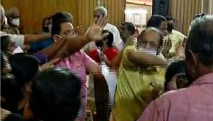 ഇവർ തമ്മിലുള്ള തർക്കം മറ്റ് അംഗങ്ങളും ഏറ്റെടുത്തതോടെ അംഗങ്ങൾ തമ്മിൽ ഉന്തും തള്ളുമായി . പ്രതിപക്ഷ അംഗങ്ങൾ യോഗ അജണ്ട കീറിയെറിഞ്ഞ് പ്രതിഷേധിച്ചു. സംഘർഷത്തെ തുടർന്ന് യോഗം താൽക്കാലികമായി നിർത്തിവയ്ക്കുകയും ചെയ്തു. മെഡിക്കൽ കോളജ് റസ്റ്റ് ഹൗസ് കെട്ടിടത്തിൽ മൂന്ന് മീറ്റർ നീളത്തിൽ ഷീറ്റിട്ട ഭാഗം തറവാടക നിശ്ചയിച്ച് നൽകാനുള്ള അജണ്ട മാറ്റി വയ്ക്കാൻ ഭരണപക്ഷ അംഗം ആവശ്യപ്പെട്ടതാണ് സംഘർഷത്തിനു കാരണമായത് . തറവാടകയ്ക്ക് സ്ഥലം ആവശ്യപ്പെട്ടത് കോൺഗ്രസ്സ് നേതാവായ കെ സി അബുവിൻ്റെ മരുമകനായതാണ് അജണ്ട മാറ്റിവയ്ക്കാൻ കാരണമായതെന്നായിരുന്നു പ്രതിപക്ഷ ആക്ഷേപം.