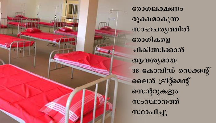 രോഗലക്ഷണം രൂക്ഷമാകുന്ന സാഹചര്യത്തില് രോഗികളെ ചികിത്സിക്കാന് ആവശ്യമായ 38 കോവിഡ് സെക്കന്റ് ലൈന് ട്രീറ്റ്മെന്റ് സെന്ററുകളും സംസ്ഥാനത്ത് സ്ഥാപിച്ചിട്ടുണ്ട്. ഇവയില് 18 സി. എസ്. എല്. ടി.സികളില് അഡ്മിഷന് ആരംഭിക്കുകയും 689 രോഗികളെ അഡ്മിറ്റ് ചെയ്തു. ഐ സി യു സൗകര്യങ്ങള്, വെന്റിലേറ്ററുകള്, ഓക്സിജന് സിലിണ്ടറുകള് തുടങ്ങി രോഗികളുടെ പരിചരണത്തിനും സുരക്ഷയ്ക്കും ആവശ്യമായ സൗകര്യങ്ങളെല്ലാം സര്ക്കാര് പരമാവധി ഒരുക്കിയിട്ടുണ്ടെന്ന് അദ്ദേഹം വ്യക്തമാക്കി.