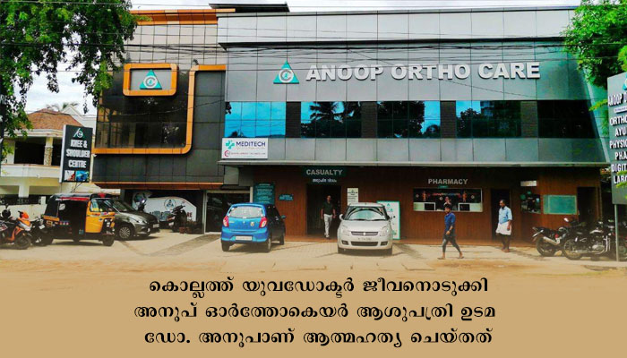 കൊല്ലത്ത് യുവഡോക്ടര്‍ ജീവനൊടുക്കി.അനൂപ് ഓര്‍ത്തോകെയര്‍ ആശുപത്രി ഉടമ ഡോ. അനൂപാണ് ആത്മഹത്യ ചെയ്തത്.