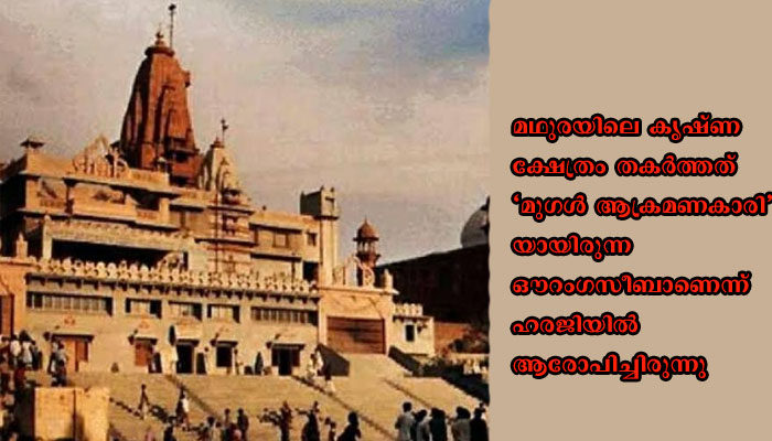 മഥുരയിലെ കൃഷ്ണ ക്ഷേത്രം തകര്‍ത്തത് ‘മുഗള്‍ ആക്രമണകാരി’യായിരുന്ന ഔറംഗസീബാണെന്ന് ഹരജിയില്‍ ആരോപിച്ചിരുന്നു.