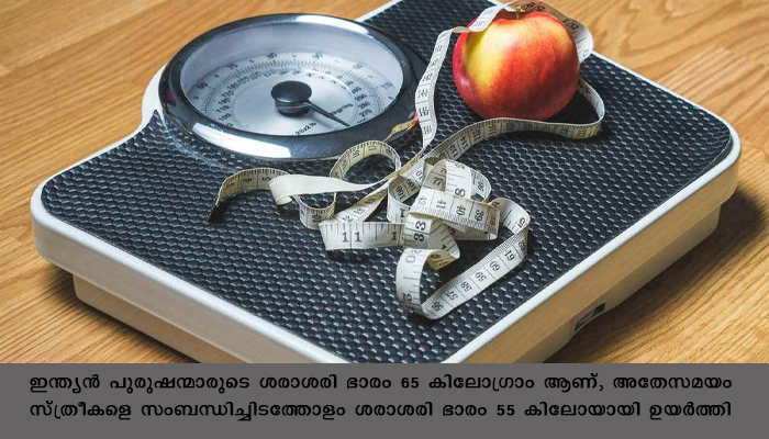 ന്യൂഡല്ഹി: രാജ്യത്തെ പുരുഷന്മാര്ക്കും സ്ത്രീകള്ക്കും അനുയോജ്യമായ ഭാരം പരിഷ്കരിച്ച് നാഷണല് ഇന്സ്റ്റിറ്റ്യൂട്ട് ഓഫ് ന്യൂട്രീഷന് (എന്ഐഎന്).പുതിയ മാര്ഗ്ഗനിര്ദ്ദേശങ്ങള് അനുസരിച്ച് ഇന്ത്യന് പുരുഷന്മാരുടെ ശരാശരി ഭാരം 65 കിലോഗ്രാം ആണ്, അതേസമയം സ്ത്രീകളെ സംബന്ധിച്ചിടത്തോളം ശരാശരി ഭാരം 55 കിലോയായി ഉയര്ത്തി. 2010ല് 60 കിലോഗ്രാം ആയിരുന്നു പുരുഷന്റെ ശരാശരി ഭാരമായി കണകാക്കിയിരുന്നത്. ഇതിലാണ് 5 കിലോഗ്രാം വര്ധപ്പിച്ചിരിക്കുന്നത്.പുരുഷന്മാരുടെ ശരാശരി ഉയരം 5 അടി 6 ഇഞ്ചില് നിന്ന് 5 അടി 8 ഇഞ്ചായി ഉയര്ത്തി. അതുപോലെ, ഇന്ത്യന് സ്ത്രീകളുടെ ഉയരം 2010ല് 5 അടിയായിരുന്നത് 5 അടി 3 ഇഞ്ചായി ഉയര്ത്തി.