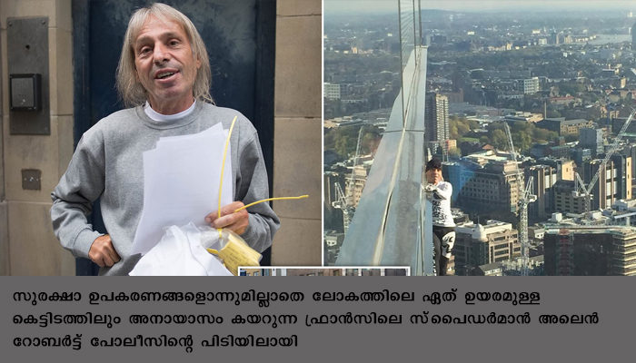1994 മുതല് ലോകമെമ്പാടും ഉയരമേറിയ കെട്ടിടങ്ങള്ക്കു മുകളില് സുരക്ഷാ ഉപകരണങ്ങളും മറ്റുമില്ലാതെ വലിഞ്ഞു കയറി ഞെട്ടിക്കുന്ന ആളാണ് 57 കാരനായ റോബര്ട്ട്. മുന്പും സമാനമായ സാഹചര്യത്തില് റോബര്ട്ടിനെ പോലീസ് അറസ്റ്റു ചെയ്തിട്ടുണ്ട്. ലോകത്തിലെ ഏറ്റവും ഉയരം കൂടിയ കെട്ടിടങ്ങളായ ദുബായിലെ ബുര്ജ് ഖലീഫയിലും, ലോകവ്യാപാര കേന്ദ്രത്തിലും, പാരീസിലെ ഈഫല് ടവറിലുമൊക്കെ ഫ്രീ ക്ലൈബിഗ് നടത്തിയിട്ടുണ്ട്.