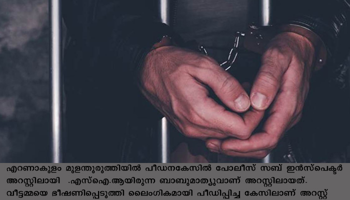 എറണാകുളത്ത പോലീസ് സബ് ഇന്സ്പെക്ടര് പീഡന കേസില് അറസ്റ്റില്