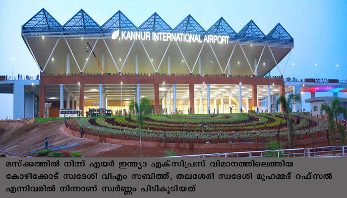 കണ്ണൂര്: കണ്ണൂര് വിമാനത്താവളത്തില് നിന്നും 68 ലക്ഷം രൂപ വിലവരുന്ന 1.341 കിലോഗ്രം സ്വര്ണ്ണം കസ്റ്റംസ് പിടകൂടി. മസ്ക്കത്തില് നിന്ന് എയര് ഇന്ത്യാ എക്സിപ്രസ് വിമാനത്തിലെത്തിയ കോഴിക്കോട് സ്വദേശി വിഎം സബിത്ത്, തലശേരി സ്വദേശി മുഹമ്മദ് റഫ്സല് എന്നിവരില് നിന്നാണ് സ്വര്ണ്ണം പിടികൂടിയത് .