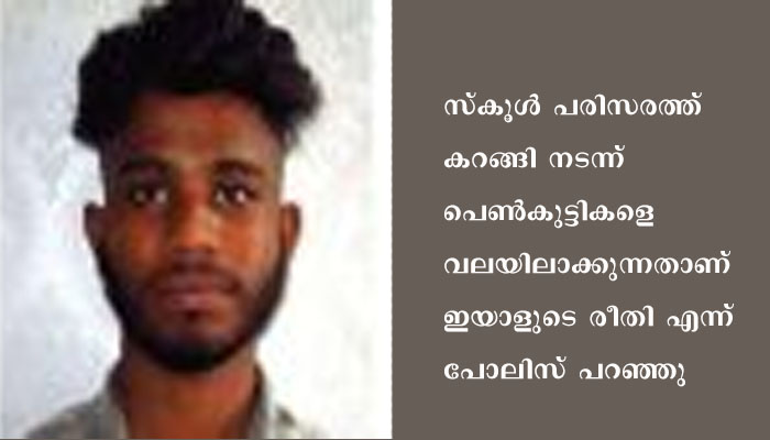 സ്കൂള് പരിസരത്ത് കറങ്ങി നടന്ന് പെണ്കുട്ടികളെ വലയിലാക്കുന്നതാണ് ഇയാളുടെ രീതി എന്ന് പോലിസ് പറഞ്ഞു. തുടർന്ന് സോഷ്യൽ മീഡിയ വഴി സൗഹൃദം ദൃഢമാക്കും.