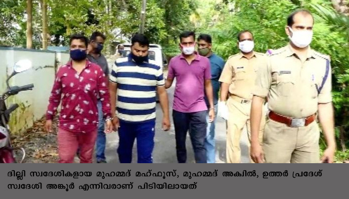 തൃശൂര്: റിട്ടയേര്ഡ് അദ്ധ്യാപികയുടെ മാല കവര്ന്ന കേസില് ഇതര സംസ്ഥാനക്കാരായ മൂന്നുപേര് പോലീസ് പിടിയിലായി. ദില്ലി സ്വദേശികളായ മുഹമ്മദ് മഹ്ഫൂസ്, മുഹമ്മദ് അക്വില് , ഉത്തര് പ്രദേശ് സ്വദേശി അങ്കൂര് എന്നിവരാണ് പിടിയിലായത്. 2020 ഒക്ടോബര് 3-ാം തീയതി ശനിയാഴ്ച വൈകിട്ട് അഞ്ചരയോടെയാണ് അദ്ധ്യാപികയുടെ അഞ്ച് പവന് തൂക്കമുളളമാല ആഡംഭര ബൈക്കിലെത്തിയ പ്രതികള് കവര്ന്നത്. പെരിഞ്ഞനം ചക്കാലക്കല് ക്ഷേത്രത്തിന് സമീപത്ത് താമസിക്കുന്ന ശ്രീദേവിയുടെ മാലയാണ് കവര്ന്നത്.