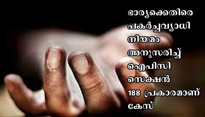 തെഹ്സില് മെഡിക്കല് സൂപ്രണ്ടിന്റെ പരാതിയെ തുടര്ന്നാണ് നടപടി. ഭാര്യക്കെതിരെ പകര്ച്ചവ്യാധി നിയമം അനുസരിച്ച് ഐപിസി സെക്ഷന് 188 പ്രകാരമാണ് കേസ്. കുടുംബനാഥന് പനിയും മറ്റ് അസുഖങ്ങളും ബാധിച്ചതോടെ നടത്തിയ പരിശോധനയിൽ കൊവിഡാണെന്ന് കണ്ടെത്തിയിരുന്നു.