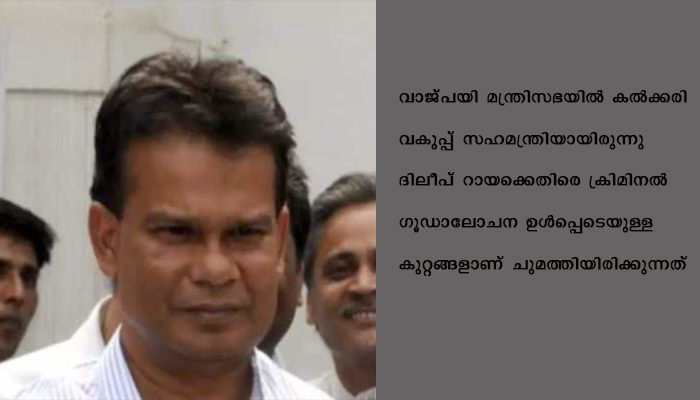 വാജ്പയി മന്ത്രിസഭയില് കല്ക്കരി വകുപ്പ് സഹമന്ത്രിയായിരുന്നു ദിലീപ് റായക്കെതിരെ ക്രിമിനല് ഗൂഡാലോചന ഉള്പ്പെടെയുള്ള കുറ്റങ്ങളാണ് ചുമത്തിയിരിക്കുന്നത്. ജാര്ഖണ്ഡില് കല്ക്കരി ബ്ലോക്ക് അനുവദിക്കുന്നതുമായി ബന്ധപ്പെട്ടുയര്ന്ന അഴിമതി കേസിലാണ് ദിലീപ് റായ് കുറ്റക്കാരനാണെന്ന് കോടതി കണ്ടെത്തിയത്.